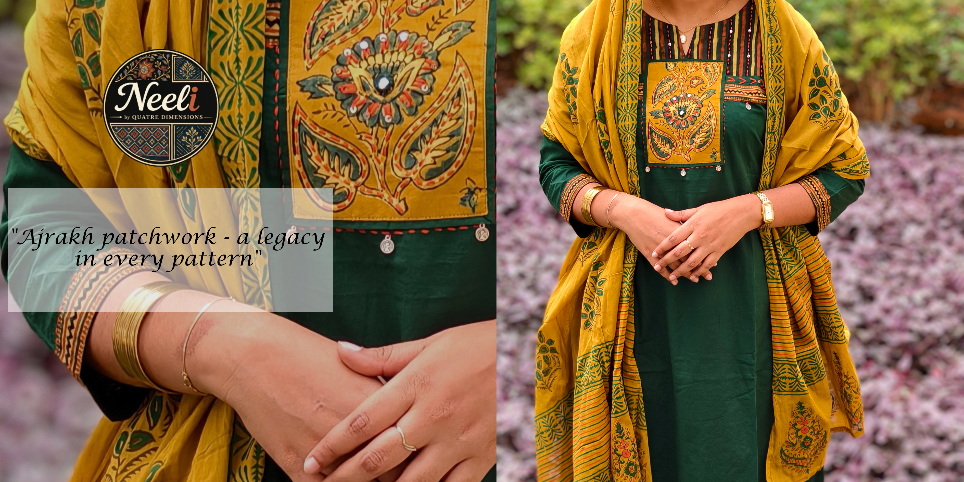 Neeli's Ajrakh patchwork kurti set with dupatta (K03AJ05SG).