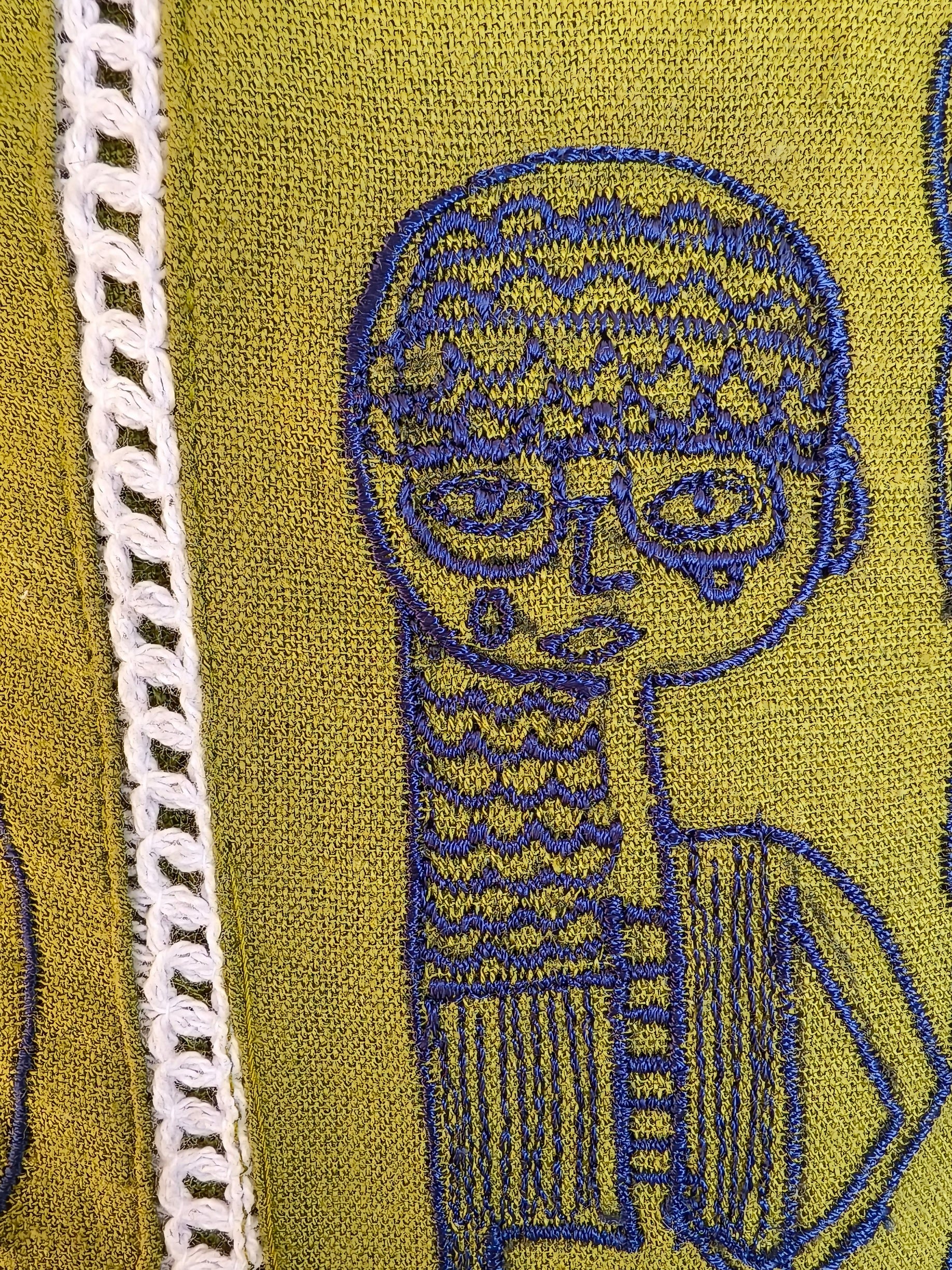 Redefine contemporary ethnic style with this perfectly balanced olive green ensemble. It features a charming, hand drawn style illustration of a girl tribe across the chest and a deep navy blue accents on the round neckline and elbow sleeves cuffs .An A-line cut that offers a flattering flow, complimented by a delicate white piping detail runnig vertically down the centre. It comes with a matching palazzo with elasticated waist with a drawstring detail and pockets.